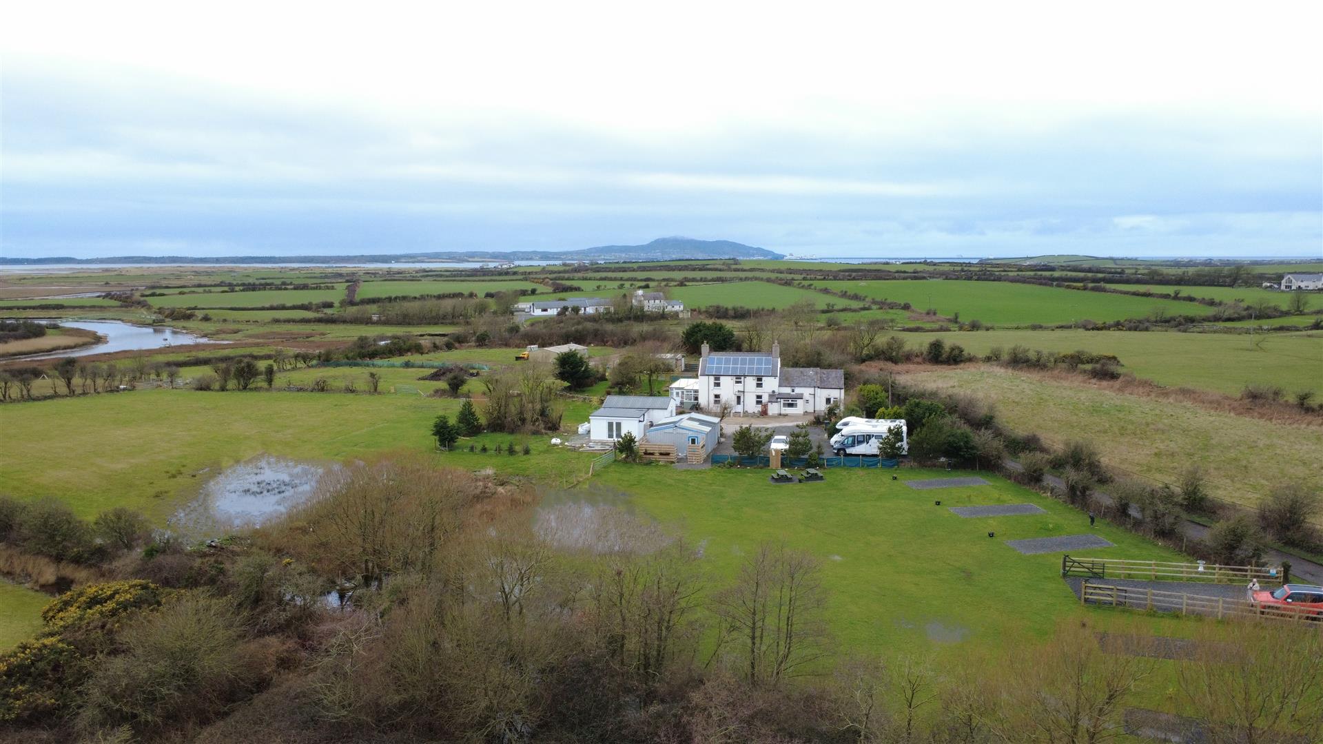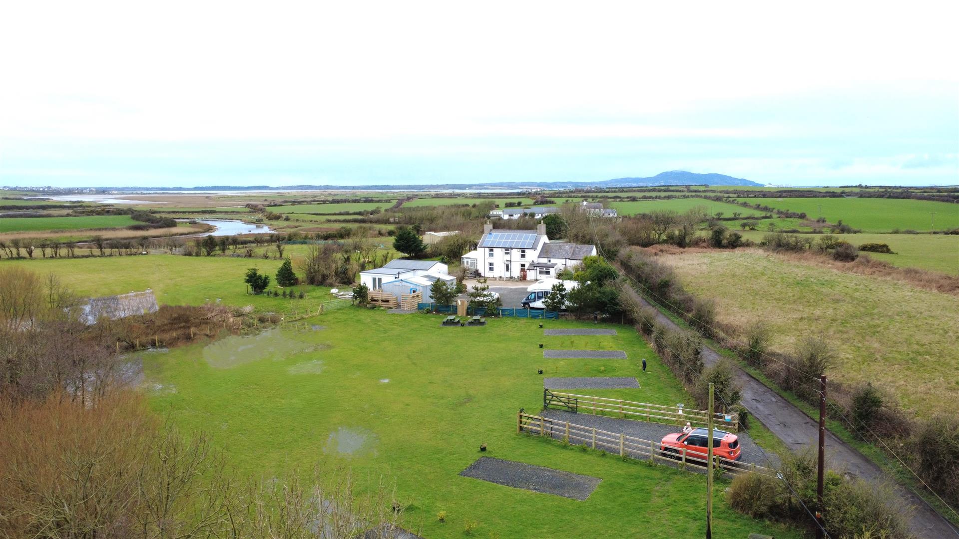 The property is approached off a quiet country lane and opens onto a concrete driveway and chipped forecourt providing ample parking and turning. The paddock to the front of the property enjoys a separate wide vehicular access and currently accommodates the touring campsite, which has the benefit of hardstanding bases and electric hook-ups together with planning permission for 6 shepherds' huts. The main residence enjoys garden areas to the side and rear comprising of raised decked patio with a South facing aspect and enclosed lawns with established trees and shrubs. The remainder of the land comprises of level grass paddocks which enjoy gated access from the property and lead down to the estuary, providing a superb haven for wildlife and an idyllic and versatile outdoor space.