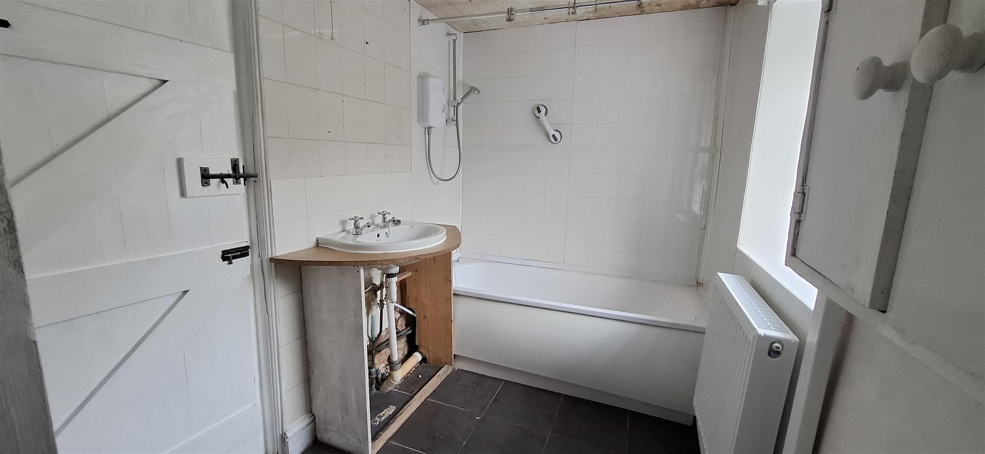 Panelled bath, wash hand basin and wc, window to rear elevation, tiled flooring.