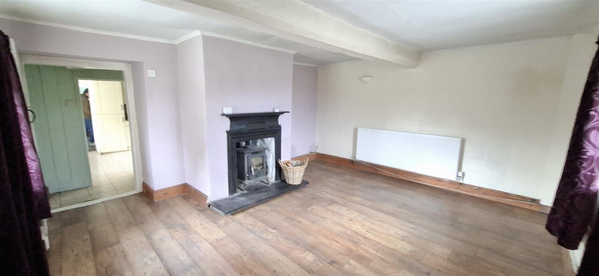 Fireplace housing a multi fuel stove, laminate flooring, windows to front and side elevation