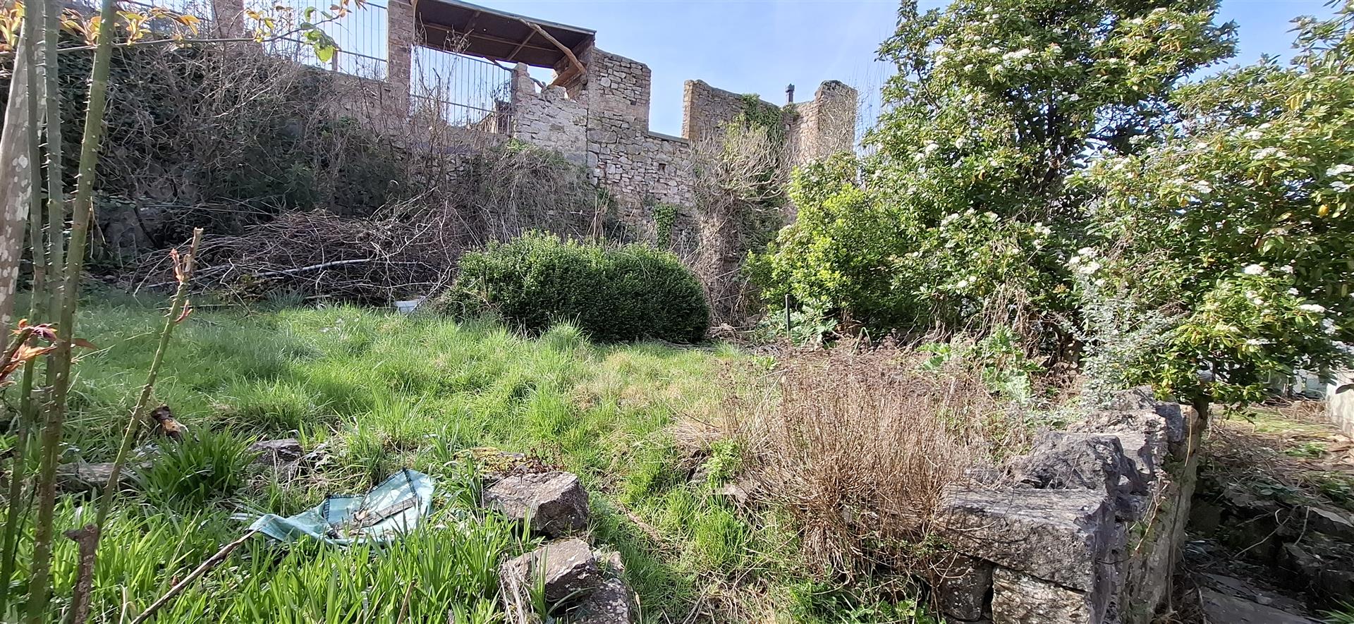 Beamed ceiling, exposed stone walling, timber flooring, external door, timber staircase to:-