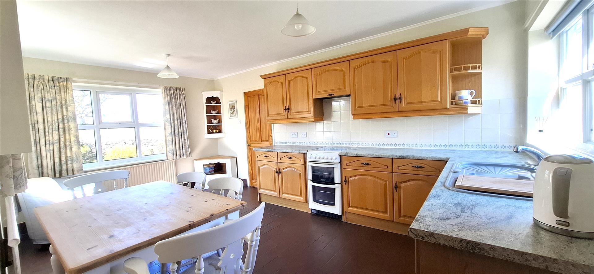 Triple aspect room providing a light and spacious kitchen and breakfast area fitted with a comprehensive range of base and wall storage units with ample working surfaces over and tiled splashbacks, inset sink unit with mixer tap, void for cooker with extractor hood over, quarry tiled flooring.
